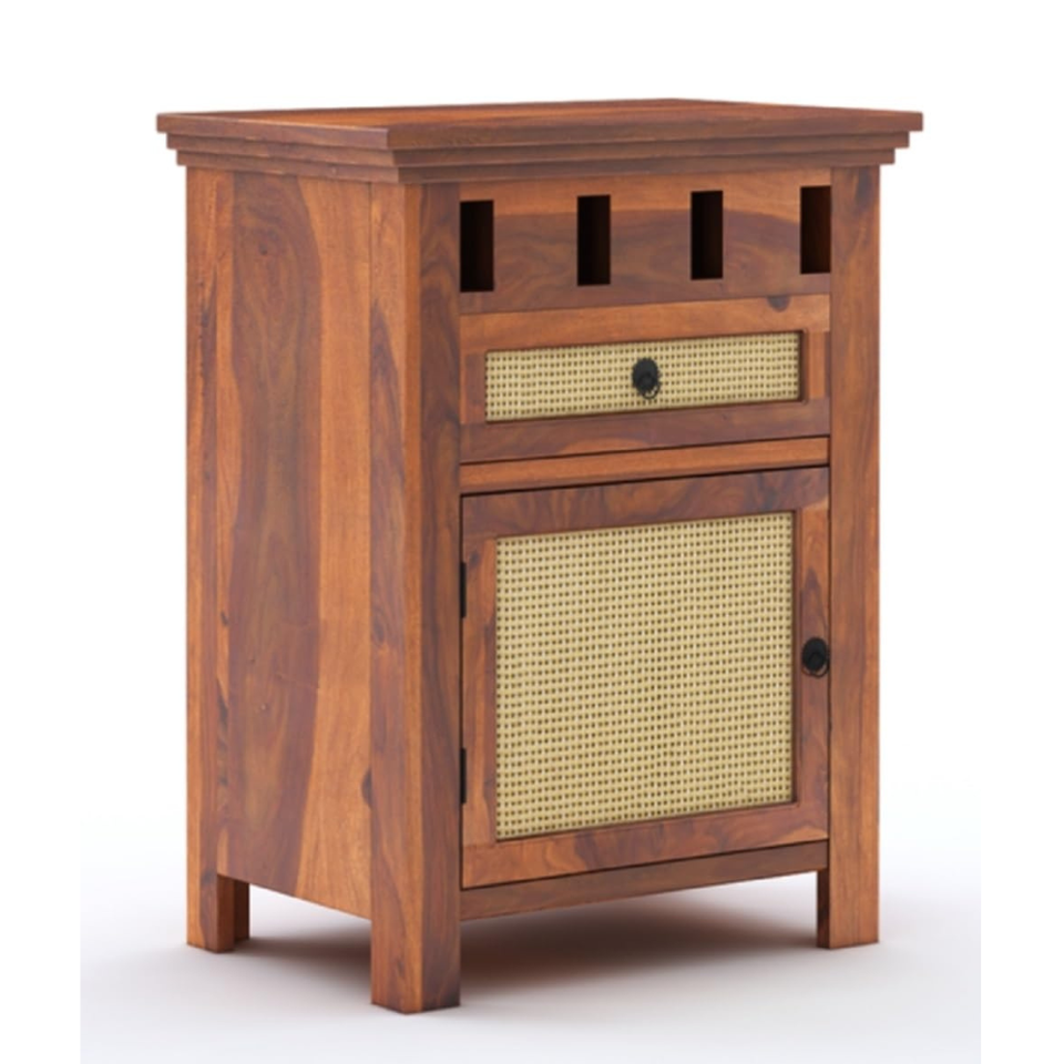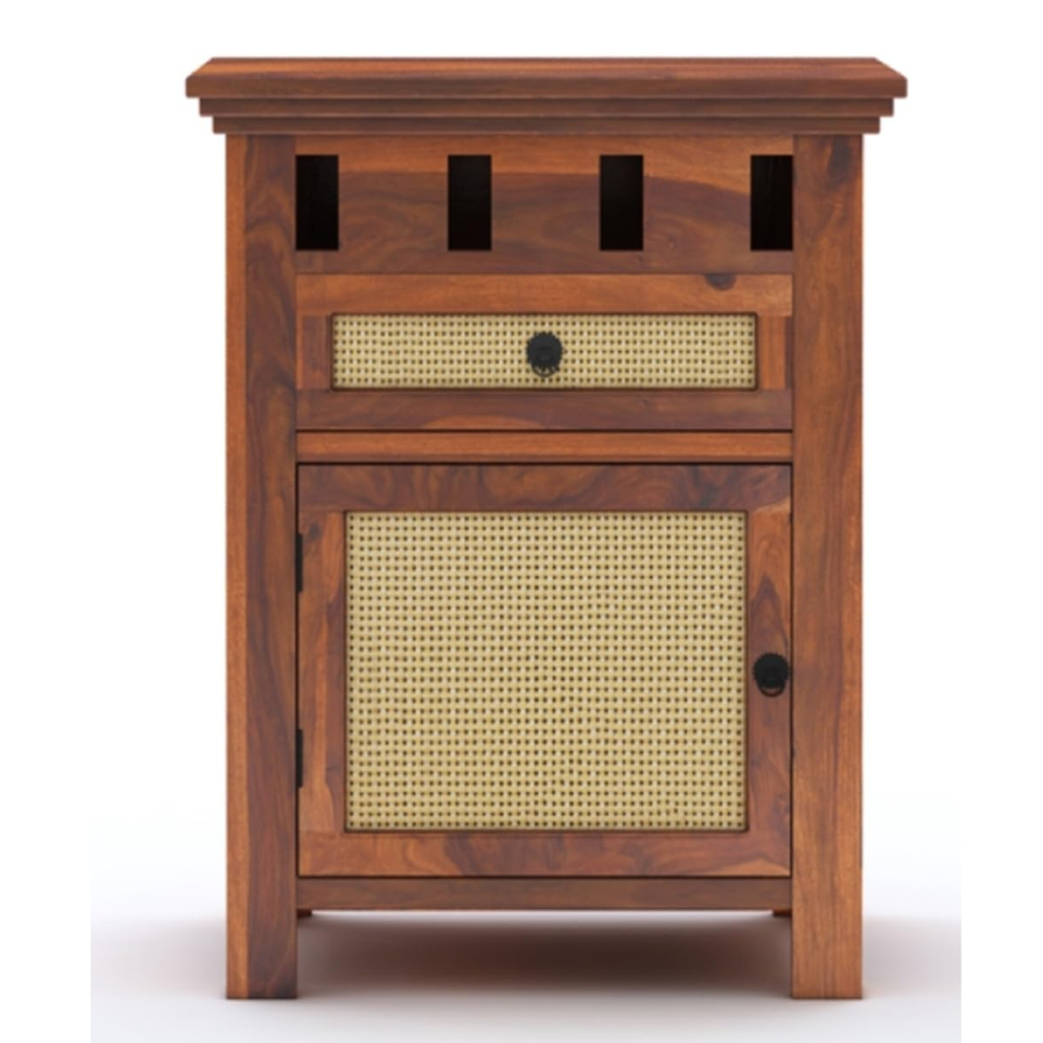 โต๊ะข้างเตียงไม้แกะสลักลายศิลป์ งานแฮนด์เมด ผิวไม้ธรรมชาติ สำหรับห้องนอน พร้อมลิ้นชักเก็บของ 1 ช่อง ทำจากไม้สัก
