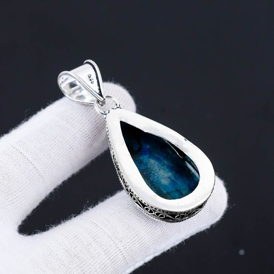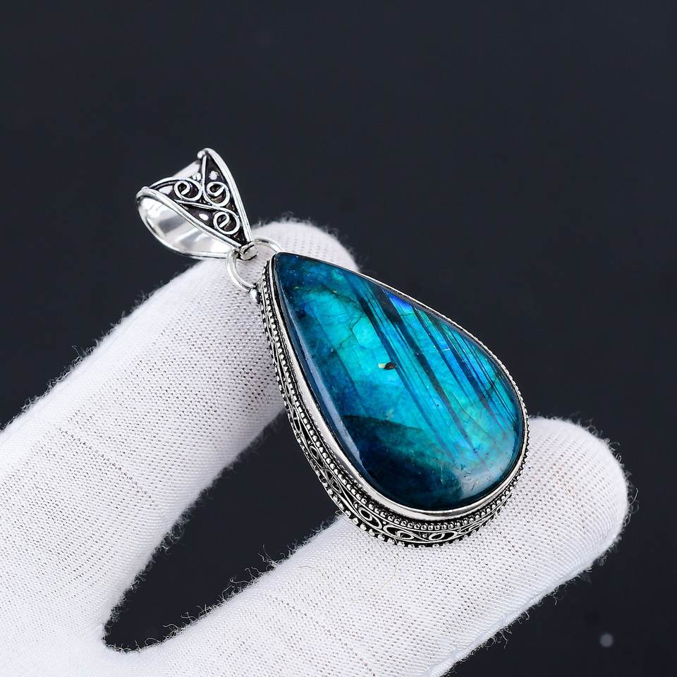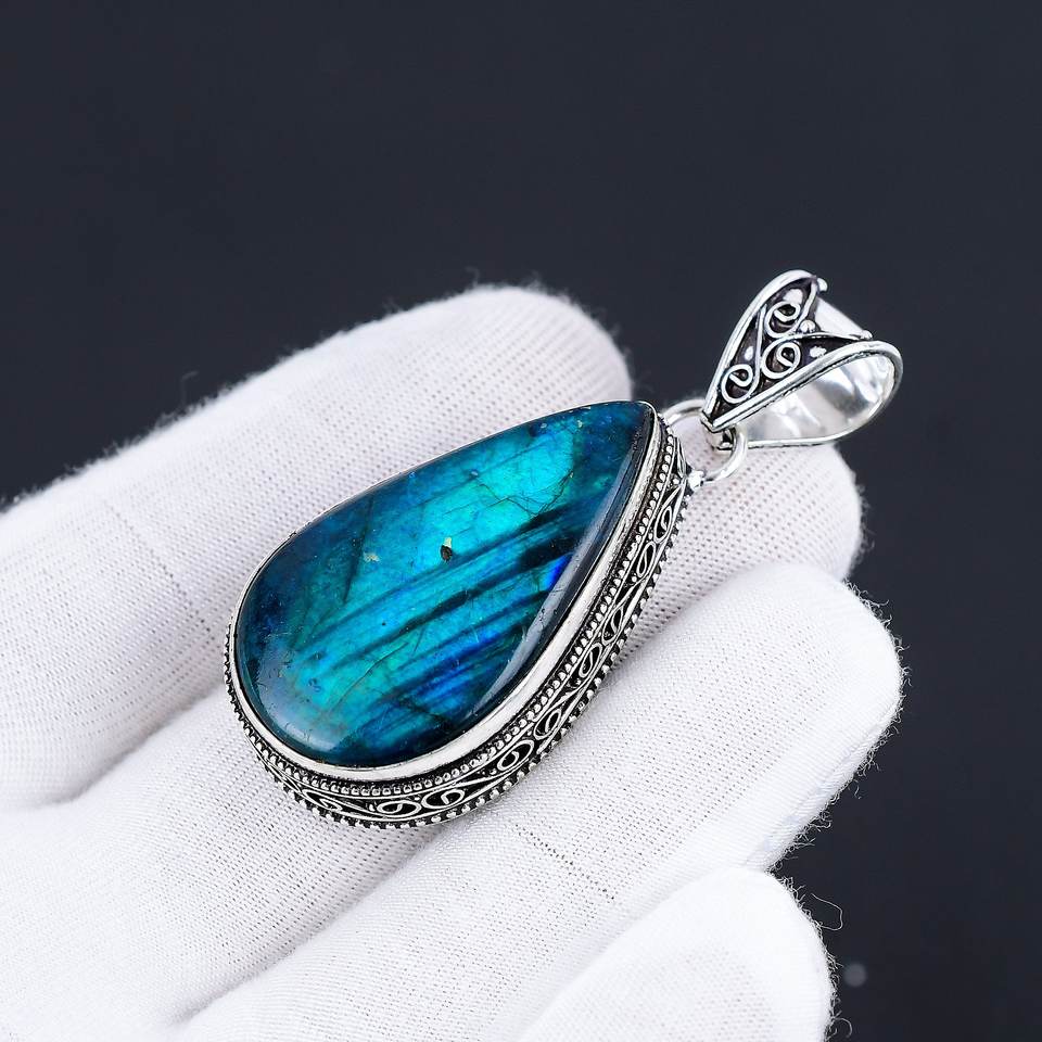 เงินแท้ 925 ทำมือสำหรับผู้หญิง ประดับด้วยพลอยลาบราดอไรต์ธรรมชาติทรงคลาสสิก ตัวเรือนแบบฝังขอบ สามารถปรับแต่งได้ พร้อมจี้แฟชั่น