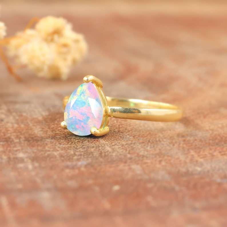 แหวนโอปอลไฟธรรมชาติแบบมินิมอลสำหรับผู้หญิงวินเทจ