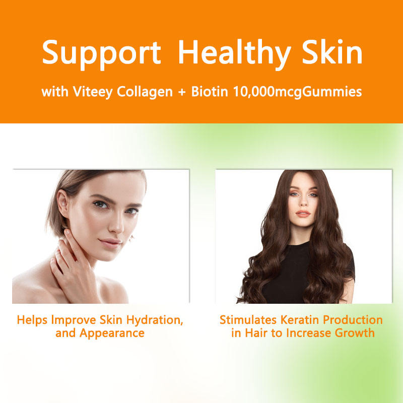 เยลลี่10000mcg ไบโอตินคอลลาเจนรสธรรมชาติรองรับสุขภาพผิวด้วยเยลลี่ลูกกวาดผลิตภัณฑ์เสริมอาหาร Viteey Collgen