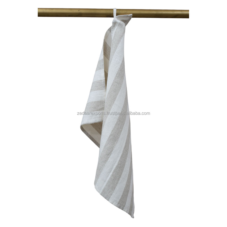 ผ้าเช็ดจานลายทางทำจากผ้าลินินธรรมชาติ ยั่งยืน นุ่ม ทนทาน ใช้ซ้ำได้ ไม่เป็นขุย คุณภาพพรีเมียม สำหรับใช้ในครัวเรือน