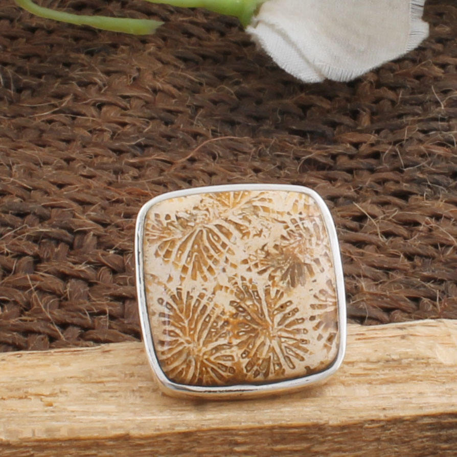 แหวนเงินแท้ 925 ประดับปะการังฟอสซิลธรรมชาติ ลายดอกไม้ออร์แกนิก แหวนพลอยทำมือ งานฝีมือสำหรับผู้หญิง ของขวัญแต่งงานสุดพิเศษ