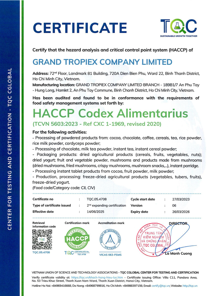 การรับรอง:HACCP GMP ฮาลาล BRC