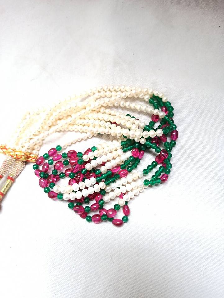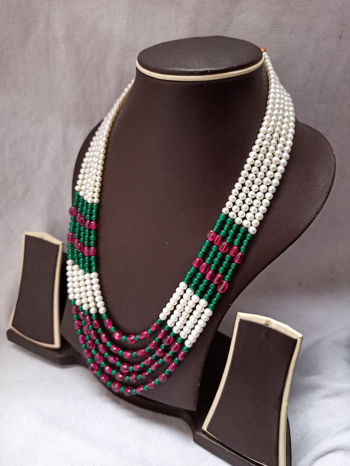 สร้อยคอไข่มุกน้ำจืดธรรมชาติแบบหลายเส้นสร้อยคอลูกปัดกลมเรียบ5เส้นสร้อยคอ478พลอยกะรัตปรับสายได้