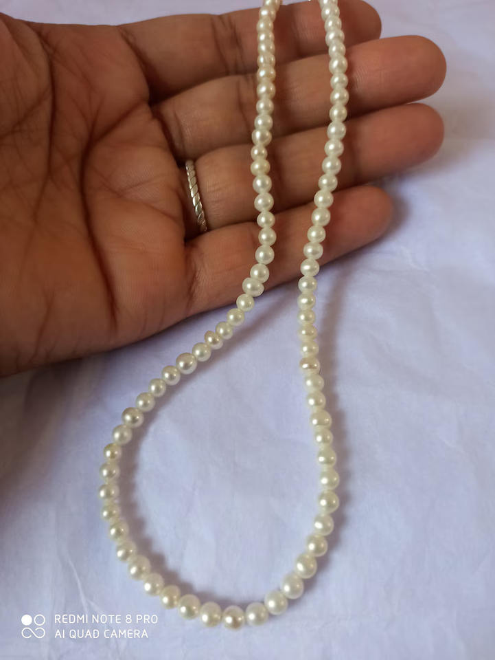 สร้อยคอไข่มุกน้ำจืดธรรมชาติมุกน้ำกลม62กะรัต AAA สร้อยคอพลอยคุณภาพ