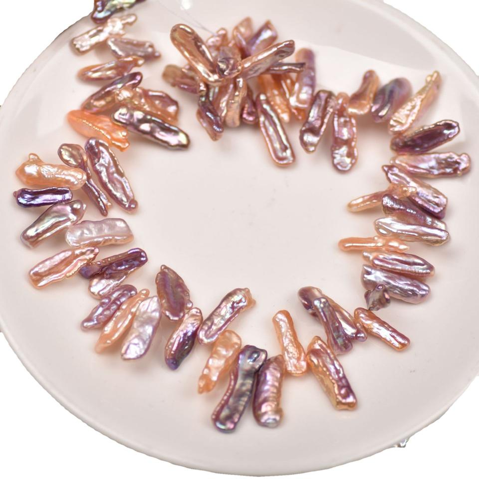 ไข่มุกน้ำจืดทรงบาร็อคธรรมชาติ 37 รู วัสดุ DIY กึ่งสำเร็จรูป แสงสว่างดี สีผสม สีขาวพีพา สำหรับทำเครื่องประดับ