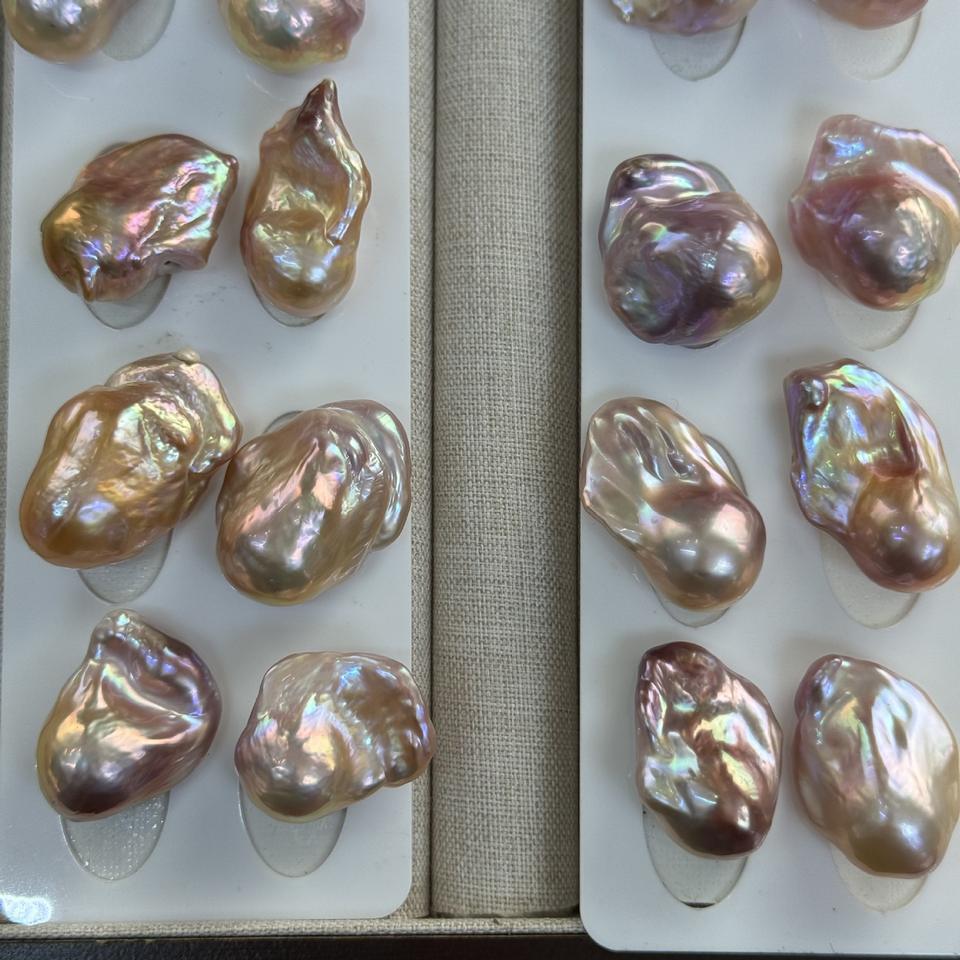 ไข่มุกน้ำจืดธรรมชาติหลากสี ทรงบาร็อค ขนาด 25 มม. ยาว 15 มม. แสงเงาสวยงาม ไร้ตำหนิ ขายส่ง