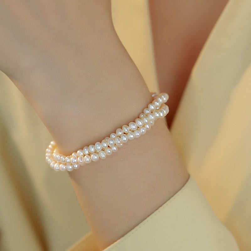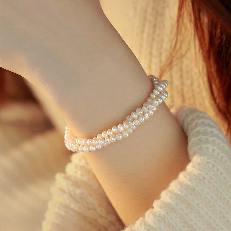 สร้อยข้อมือไข่มุกน้ำจืดธรรมชาติประดับด้วยลูกปัดมิลเล็ตสามชั้น เครื่องประดับหรูหรา