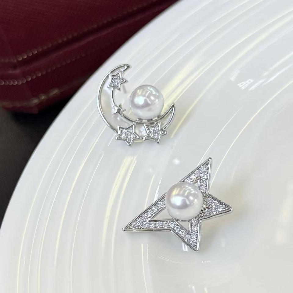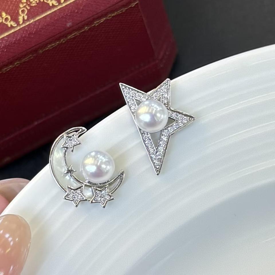 ต่างหูมุกน้ำจืดธรรมชาติทรงพระจันทร์เสี้ยว ดีไซน์เก๋ งานฝังประณีต ขายส่งจากโรงงานโดยตรง