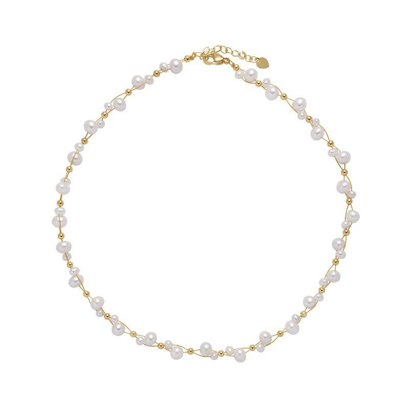 สร้อยคอมุกน้ำจืดธรรมชาติสำหรับผู้หญิง สไตล์พระราชวังฝรั่งเศสย้อนยุค ดีไซน์ท้องฟ้าเต็มดาวแบบมินิมอล สินค้ามาใหม่