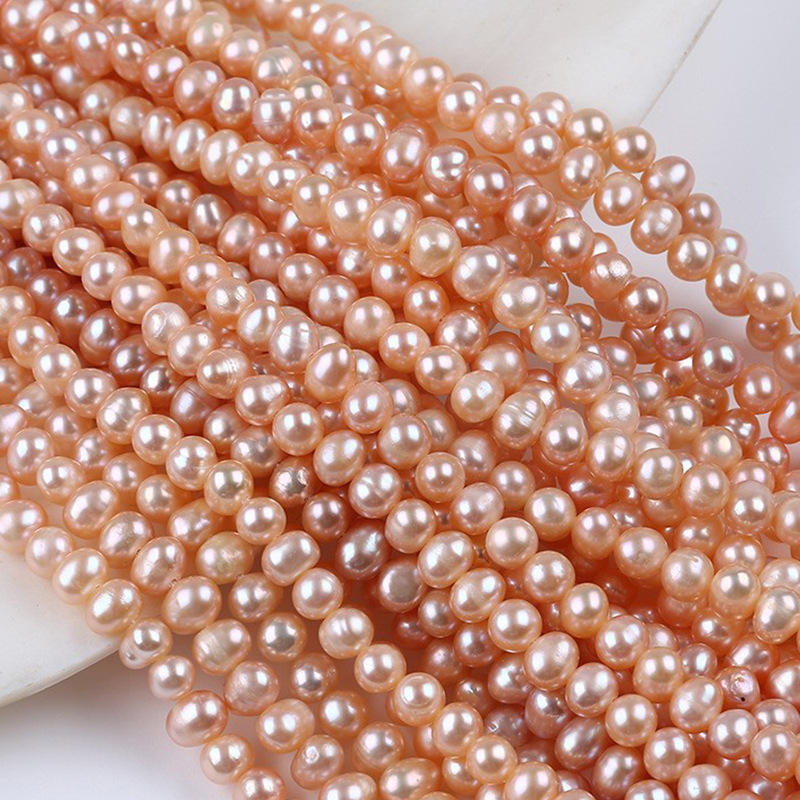ไข่มุกน้ำจืดธรรมชาติแบบกึ่งสำเร็จรูป ขนาด 5-6 มม. รูปทรงรี ไข่มุกแท้ สำหรับงาน DIY ทำมือ สีขาวและชมพู