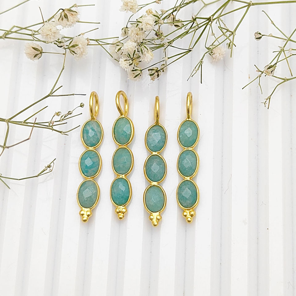 Product Name:Gemstone 3 Stone Pendant 6x4mm Oval 925 Silver Bezel Charms