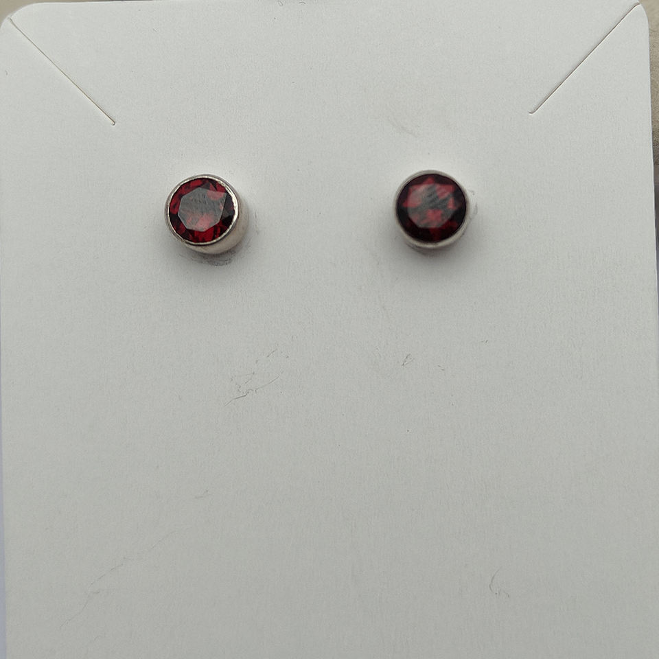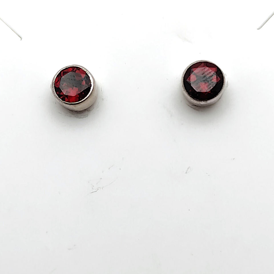 โกเมนธรรมชาติ6มม. 925กลมต่างหูเงินสเตอริง2.14 GMS ต่างหูอัญมณีเรียบง่ายทันสมัย