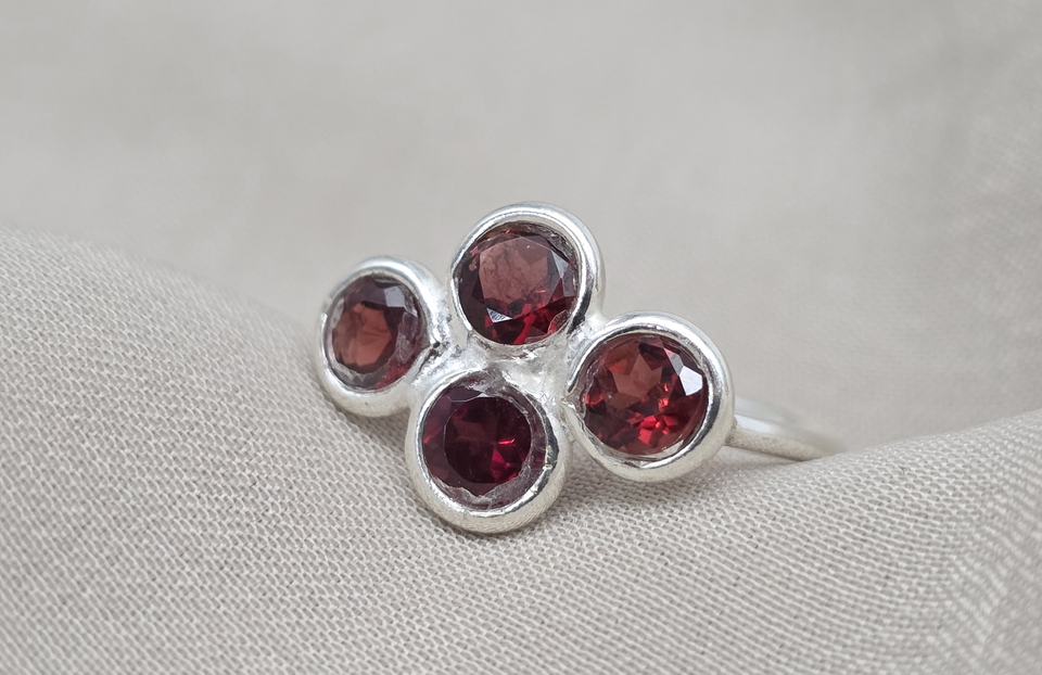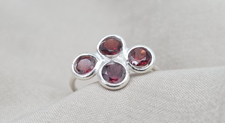 แหวนพลอยโกเมนธรรมชาติเงินแท้ 925 ทำมือ ดีไซน์เรียบง่ายสำหรับผู้หญิงและผู้ชาย เครื่องประดับงานแต่งงาน