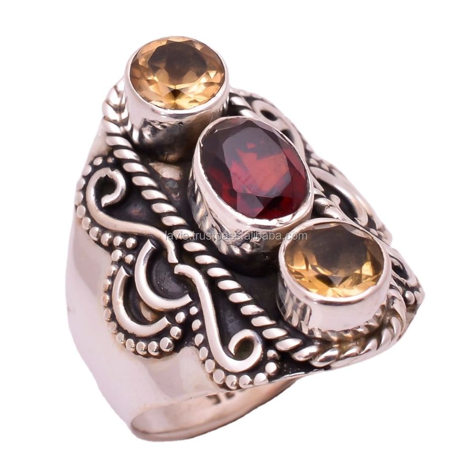 ธรรมชาติโกเมนซิทรินแหวนพลอย925เครื่องประดับเงินสเตอร์ลิงอินเดียแฮนด์เมดปรับแหวนเงินผู้ผลิตผู้ส่งออก