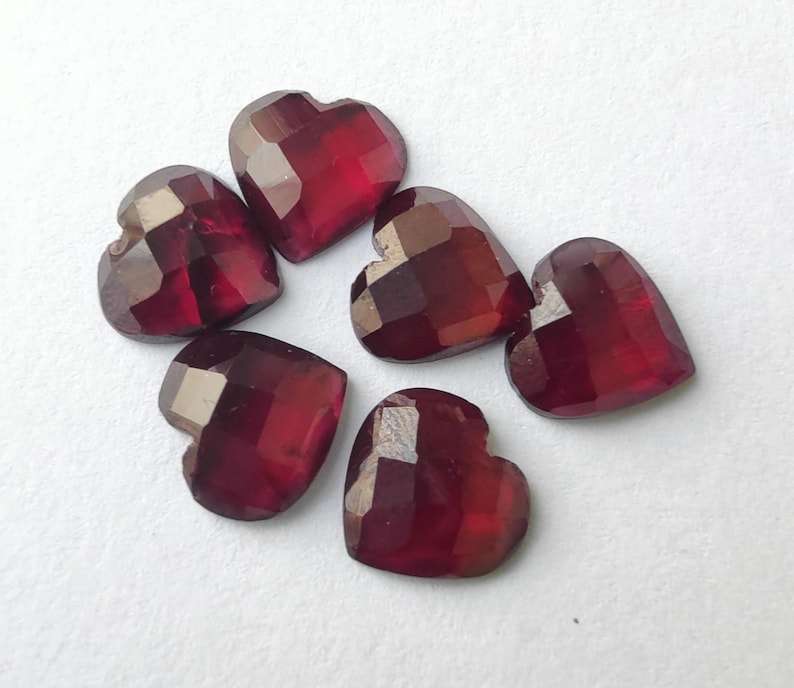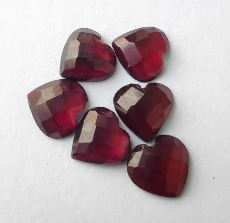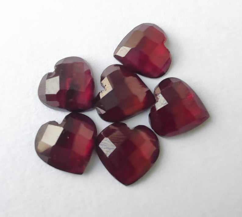 พลอยโกเมนธรรมชาติทรงหัวใจเจียระไนแบบเช็คเกอร์คัท พลอยเม็ดเดี่ยวสำหรับทำเครื่องประดับ พลอยคริสตัลบำบัด