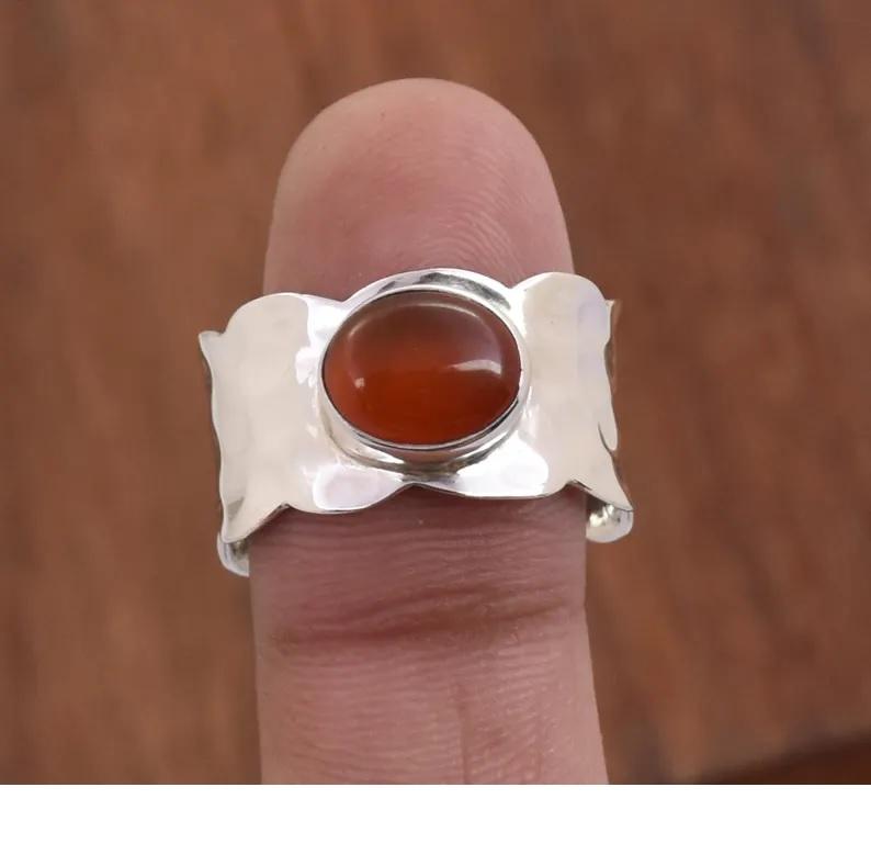 แหวนโกเมนธรรมชาติ925เงินวงรีหินตอกแหวนแต่งงาน