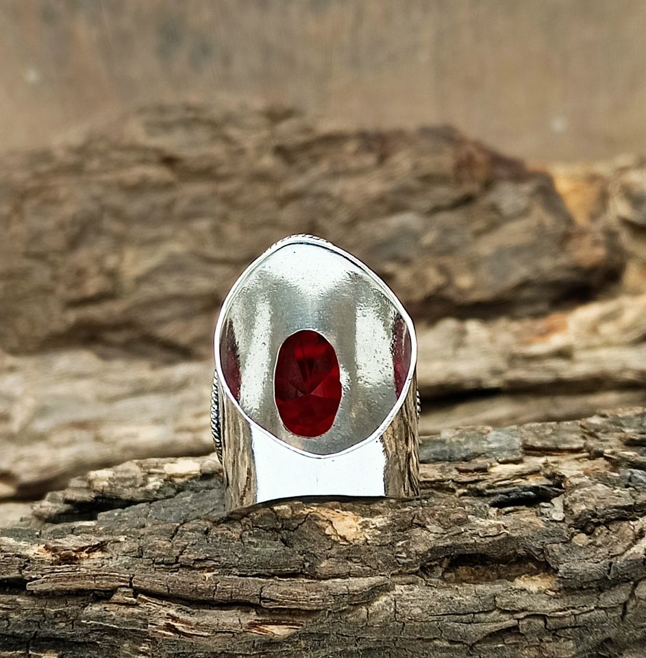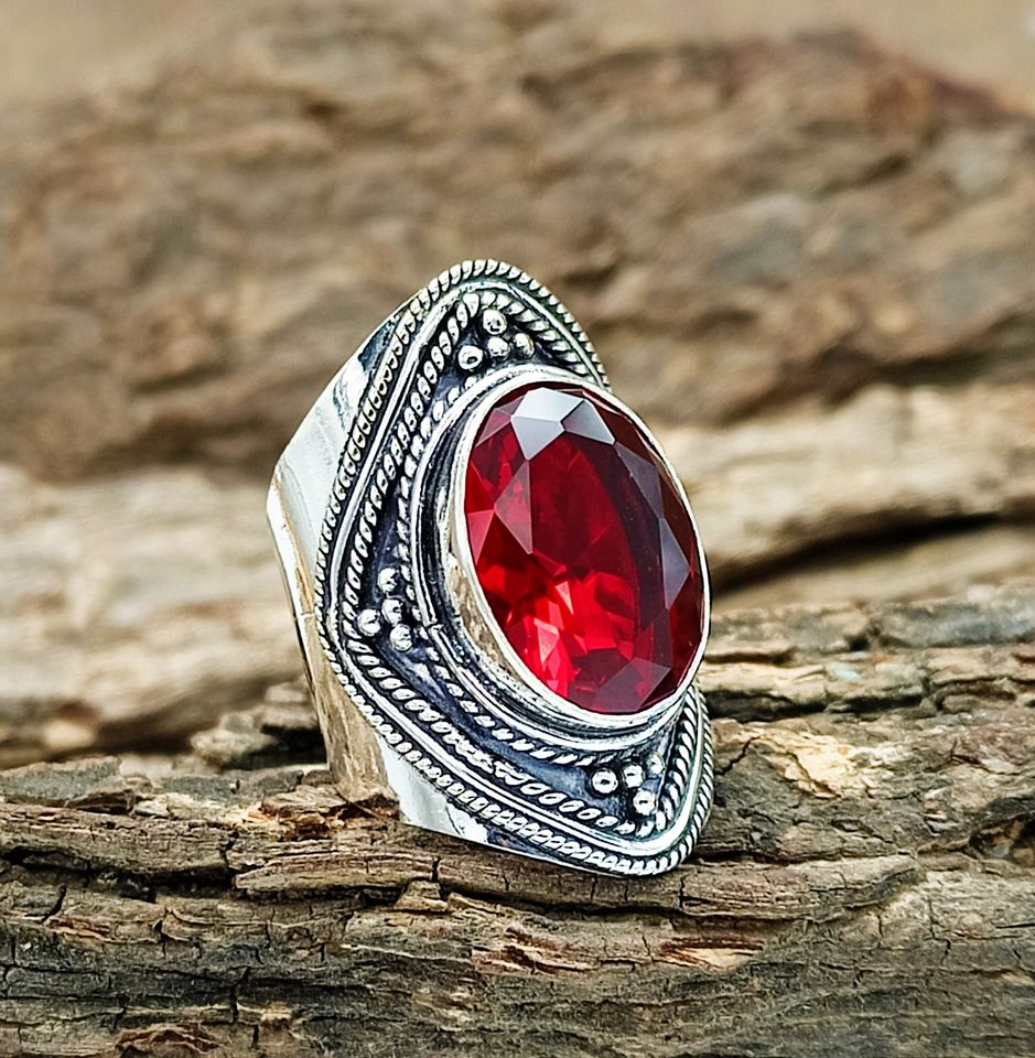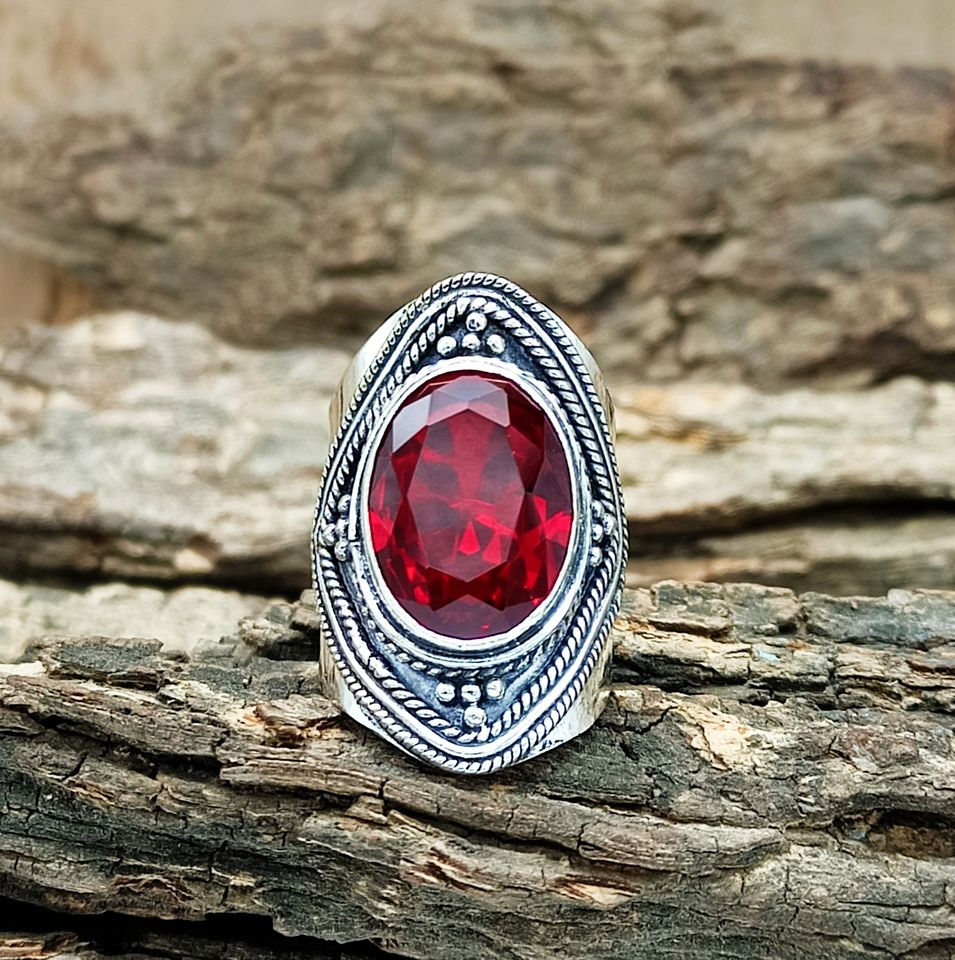 แหวนโกเมนธรรมชาติ พลอยประจำเดือนมกราคม สีแดงเข้ม เครื่องประดับสไตล์วินเทจ แหวนโกเมนทำมือ ของขวัญสำหรับเธอ