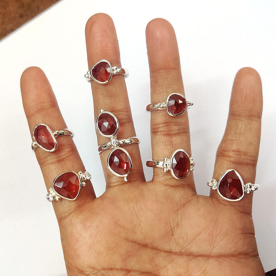 Keyword:Garnet minimalist ring, silver garnet ring