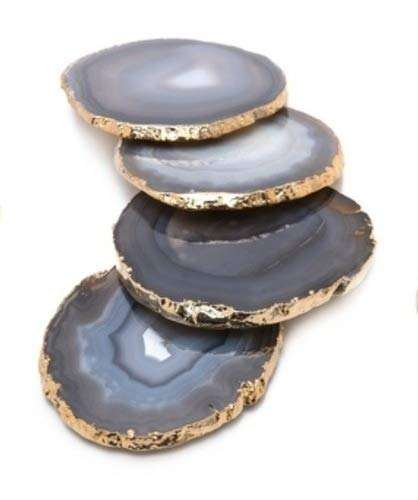 ที่รองแก้วทำมือจากหินอาเกตธรรมชาติ ขอบสีทอง รูปทรงตุ๊กตา คริสตัลอัญมณี เสริมฮวงจุ้ย เป็นมิตรต่อสิ่งแวดล้อม
