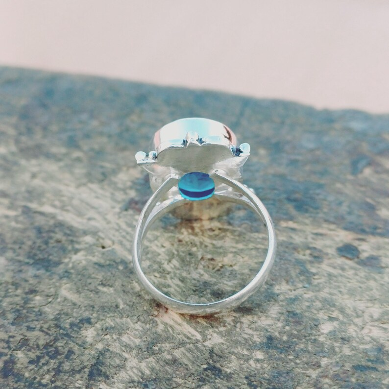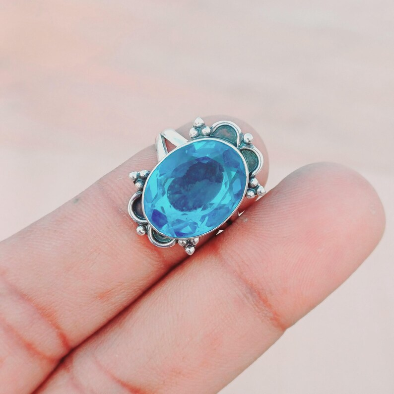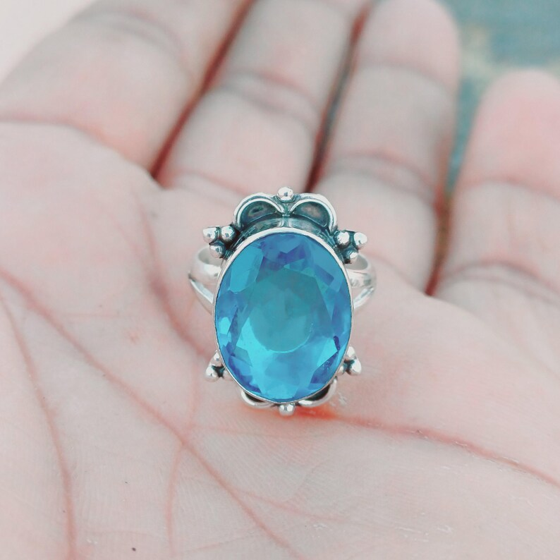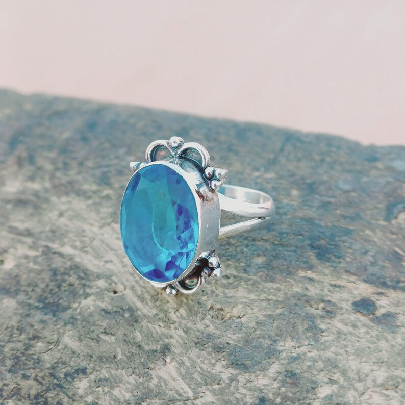 แหวนเงินแท้สีฟ้าพลอยธรรมชาติแหวนเงินแท้925บุษราคัมแหวนแฟชั่นเครื่องประดับเงิน