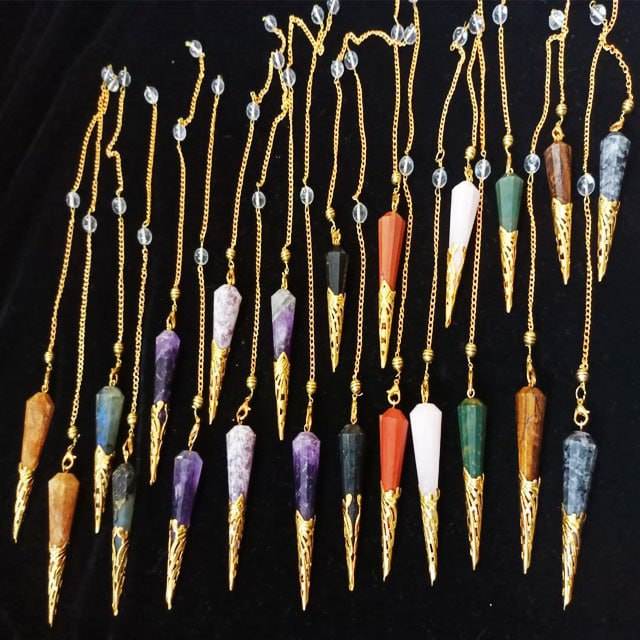 จักระพลอยธรรมชาติลูกตุ้มพร้อมกรวยโลหะสไตล์ฮวงจุ้ย