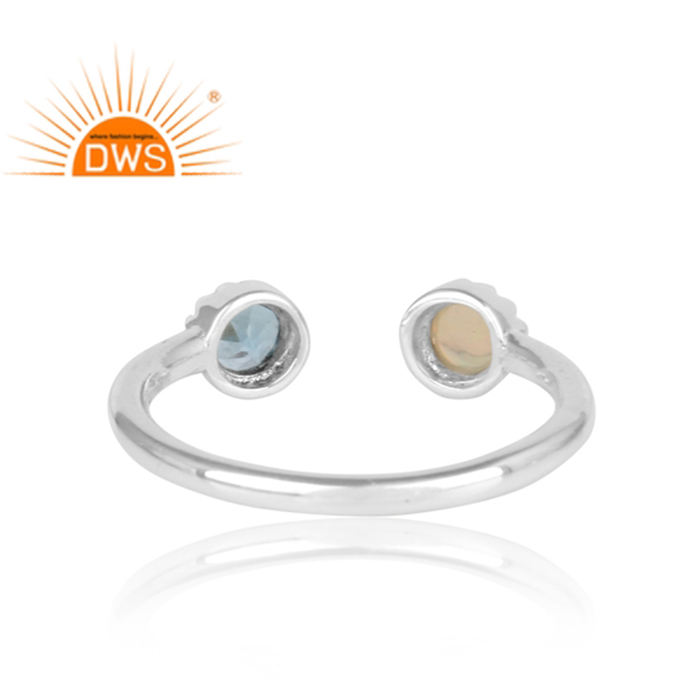 พลอยธรรมชาติเอธิโอเปียโอปอลและสีฟ้าบุษราคัมแหวนเงิน925เงินสเตอร์ลิงแหวนผู้ผลิตเครื่องประดับ