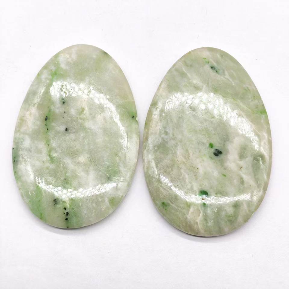 พลอยธรรมชาติฐานแบนตัดด้วยมือหัตถกรรมหินหยก16x12-18x13mm สีเขียว cabocon หลวมสำหรับทำเครื่องประดับ