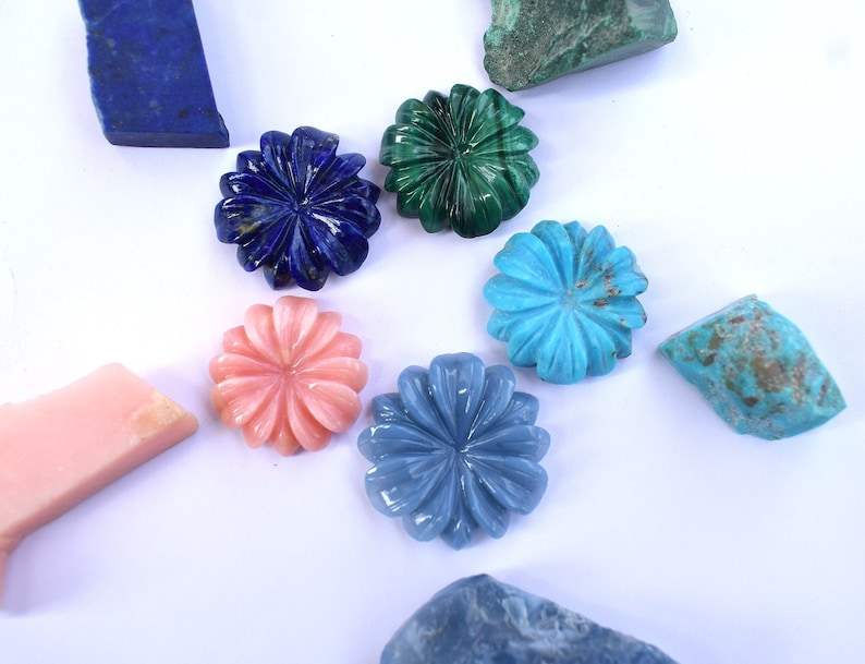 ดอกไม้อัญมณีสีเหลืองธรรมชาติแกะสลักทำด้วยมือพร้อมเล่นสีสำหรับทำเครื่องประดับ