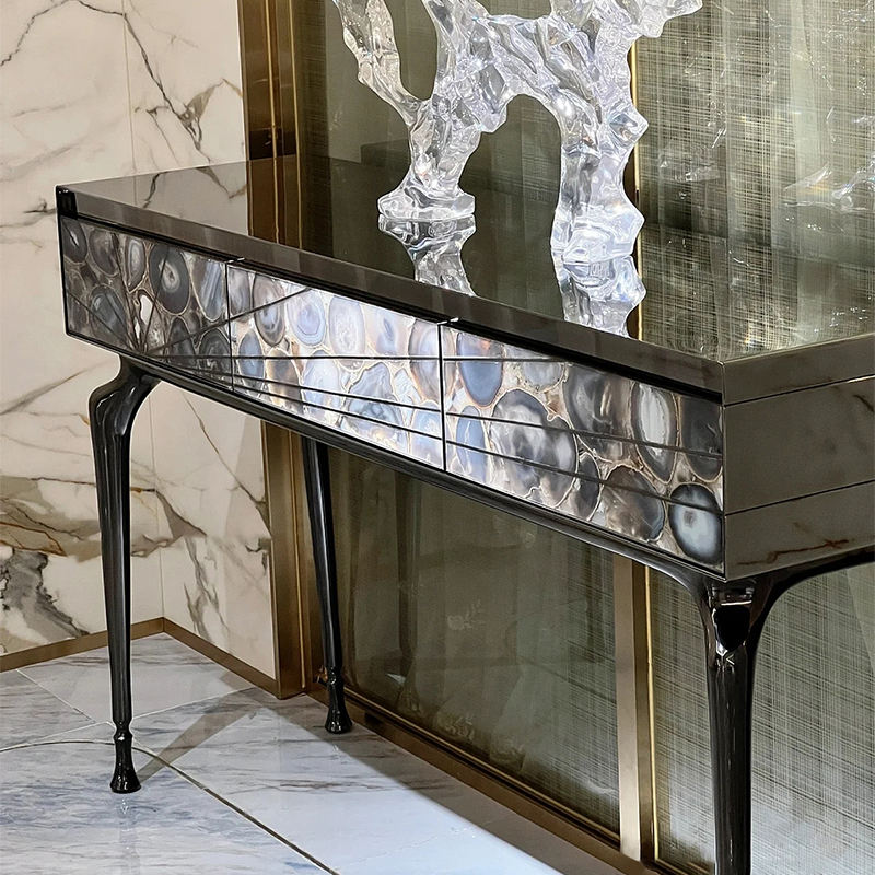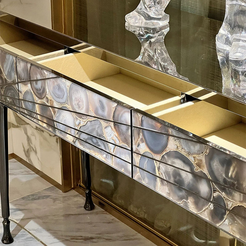 ตู้เก็บของห้องโถงทางเข้าโลหะ แผงลิ้นชักหินอาเกต เฟอร์นิเจอร์หินธรรมชาติ