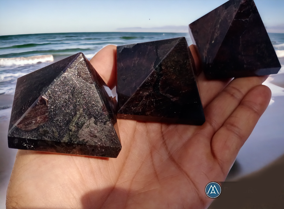 ปิรามิดคริสตัลโกเมนพลอยธรรมชาติหินธรรมชาติที่หินแร่พลอยโกเมนจำนวนมากอัญมณีพีระมิด