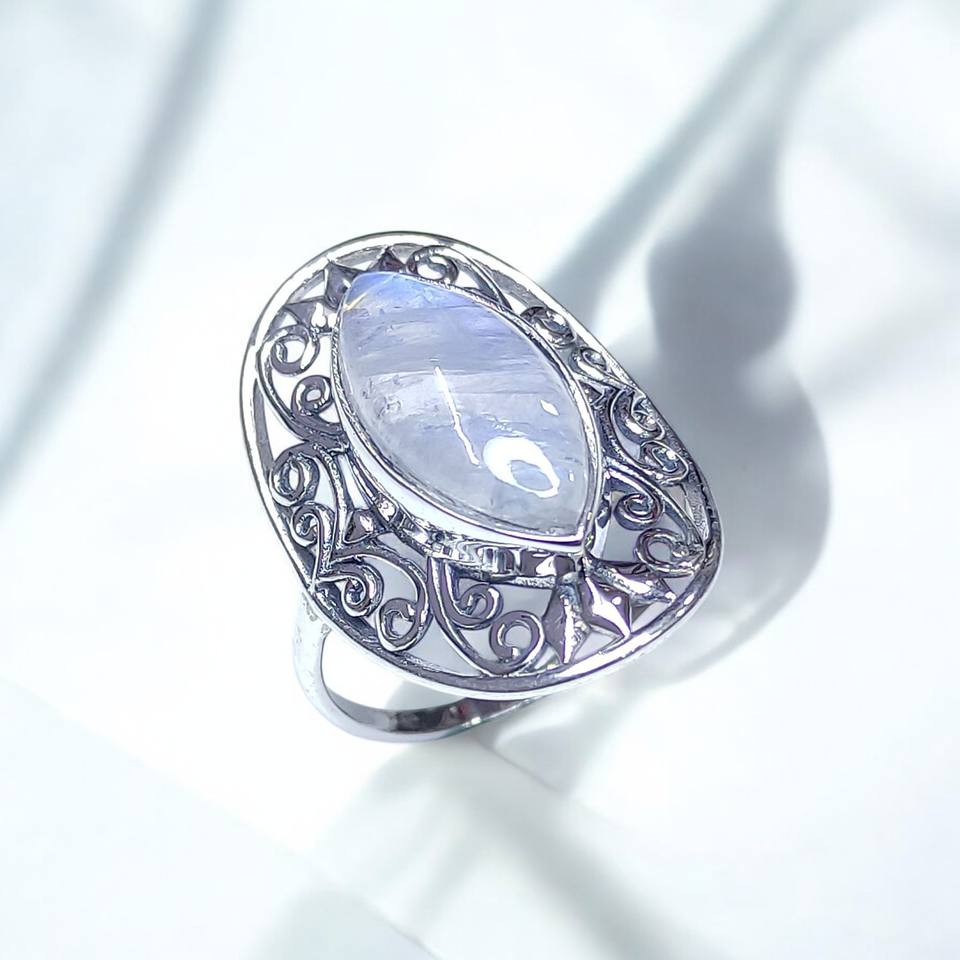 Vintage Natural Marquise Cut Moonstone Turquoise & Labradorite 925 Sterling Silver Boho Ring Big Bohemian Chunky Handmade Rings