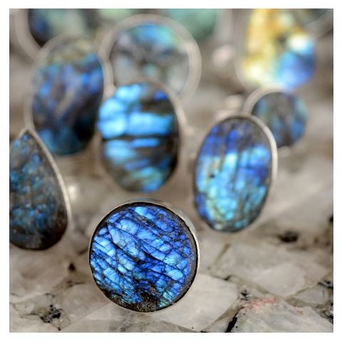 แหวนเงินประดับด้วยลาบราโดไรต์ดรูซี่