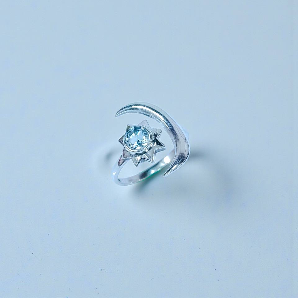 แหวนเงินแท้ 925 น้ำหนักเบา ประดับพลอยธรรมชาติ แหวนบลูโทแพซทำมือ