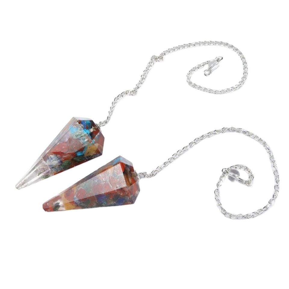 หินอัญมณีธรรมชาติสีแดงคาร์เนเลียนคริสตัล Dowsing orgone ลูกตุ้มกับ7จักระโซ่โลหะ reiki รักษาลูกตุ้ม