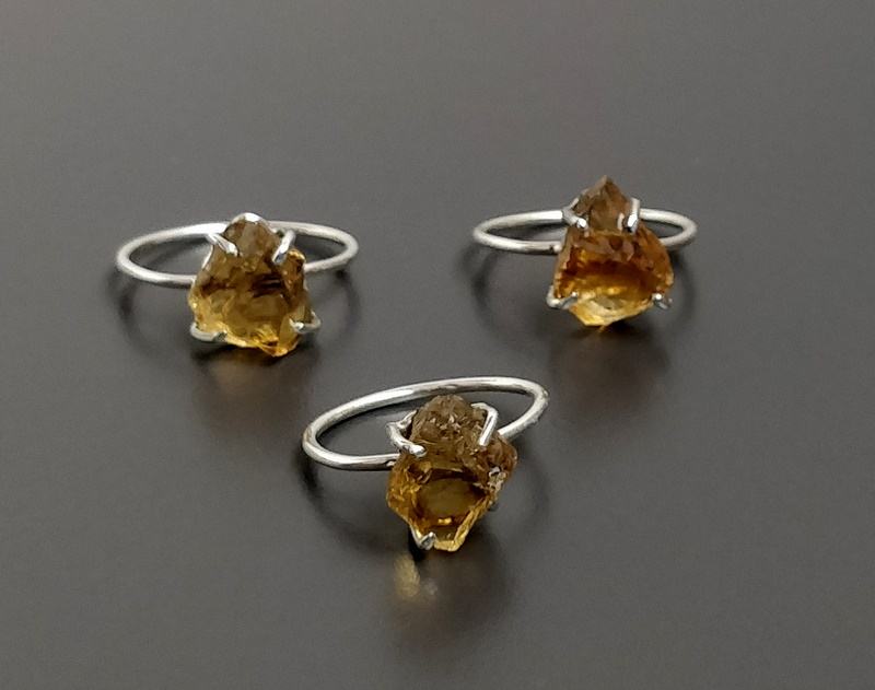 แหวนพลอยธรรมชาติเงิน925แหวนหินซิทรินดิบแหวนหินเงินสเตอร์ลิงแหวนหินซิทรินที่ยังไม่เสร็จ