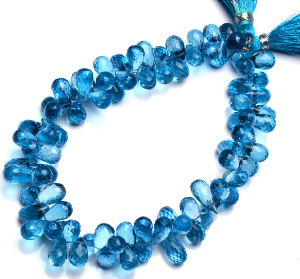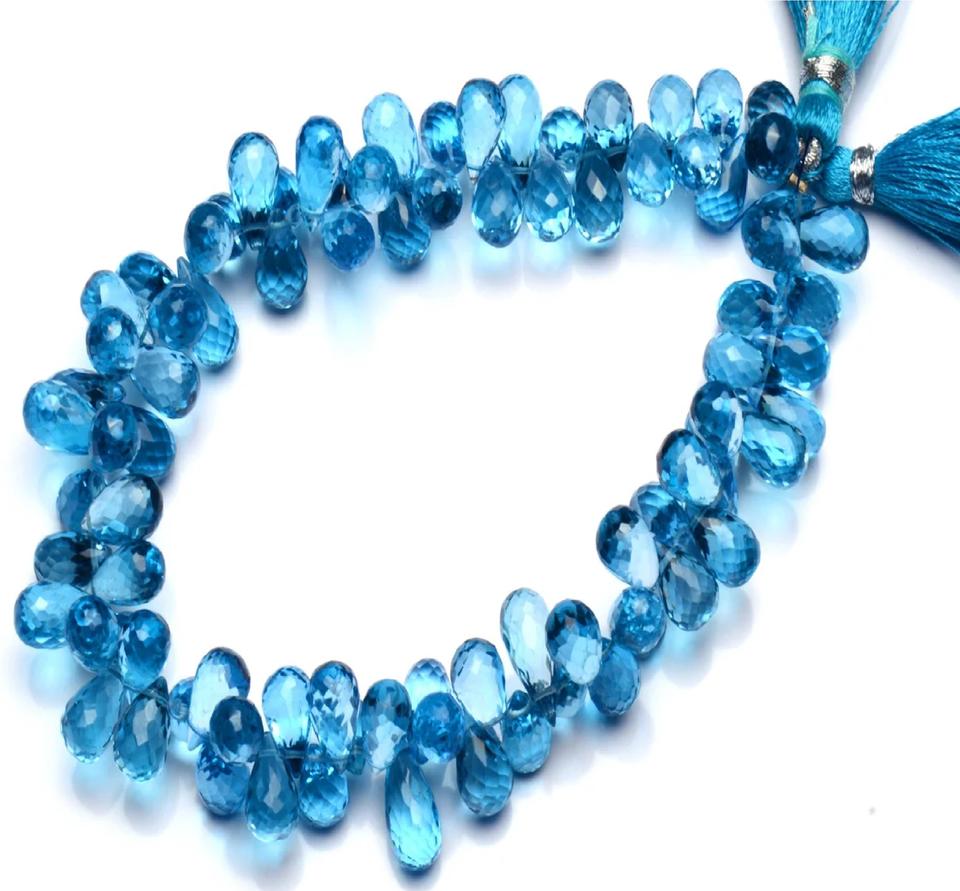 ลูกปัดบลูโทปาซทรงหยดน้ำธรรมชาติ บริการตรวจสอบโดยผู้ตรวจสอบอิสระจาก Coszcalt Exports พร้อมใบรับรองความแท้