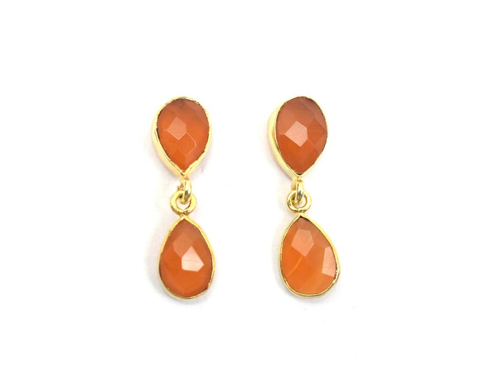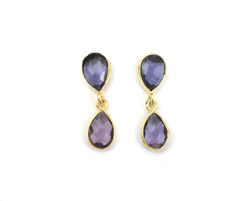 พลอยธรรมชาติชุบทอง18K หินเจียระไนทรงลูกแพร์ทำด้วยมือของขวัญที่ทันสมัยสำหรับต่างหูสตั๊ดของเธอ