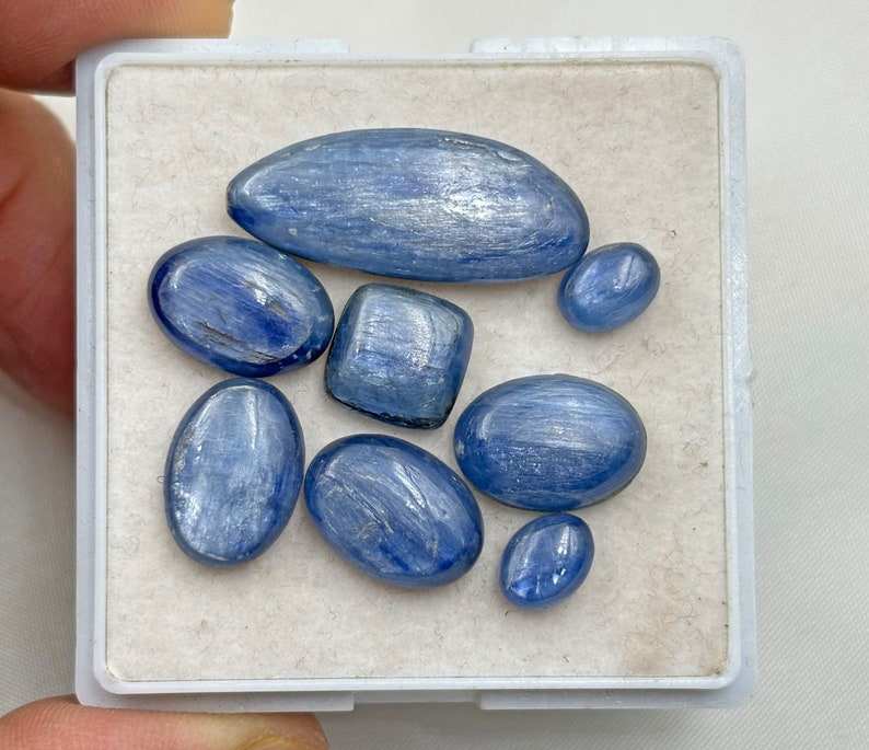 Kyanite Cabochon ธรรมชาติแท้หินอัญมณีคริสตัลสีฟ้าขัดเงาเรียบขนาดผสมเครื่องประดับ