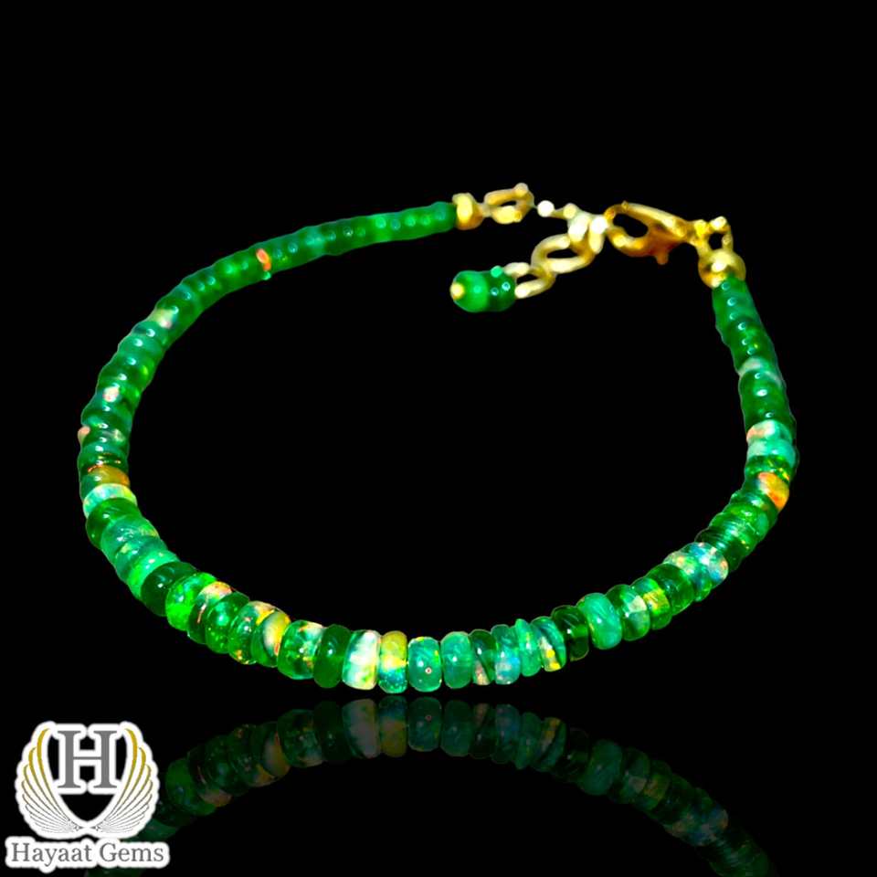 กำไลข้อมือโอปอลแท้จากเอธิโอเปีย หลากสี ไฟหลากสี ขนาด 4 มม. รูปทรงรอนเดลล์ ลูกปัดสีเขียว ประดับด้วยเงินสเตอร์ลิง ลูกปัดมุกเจียระไน ตรวจสอบโดยบุคคลที่สาม