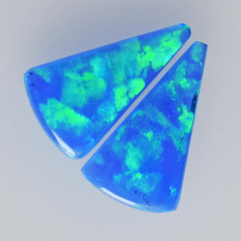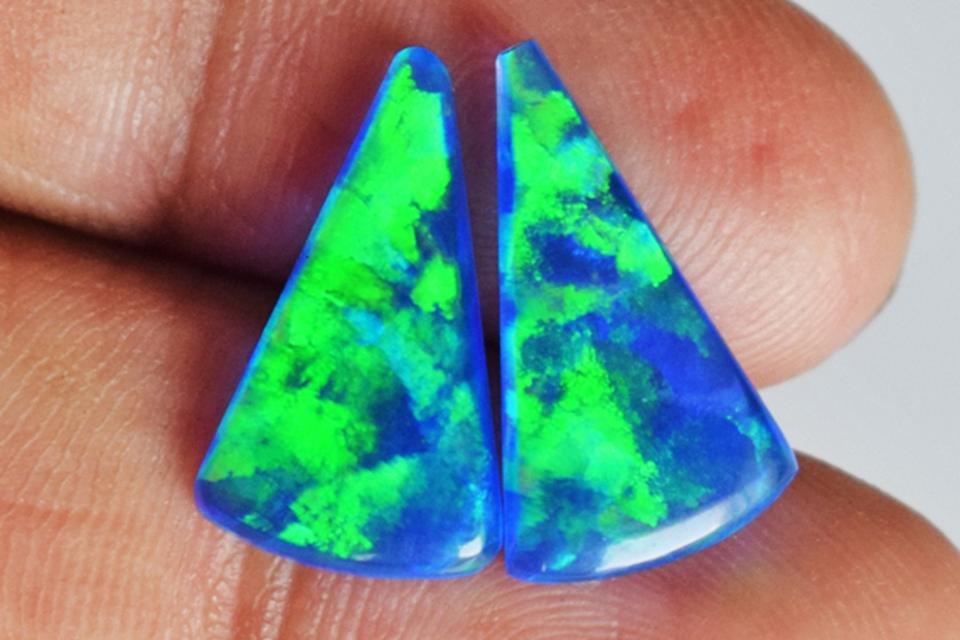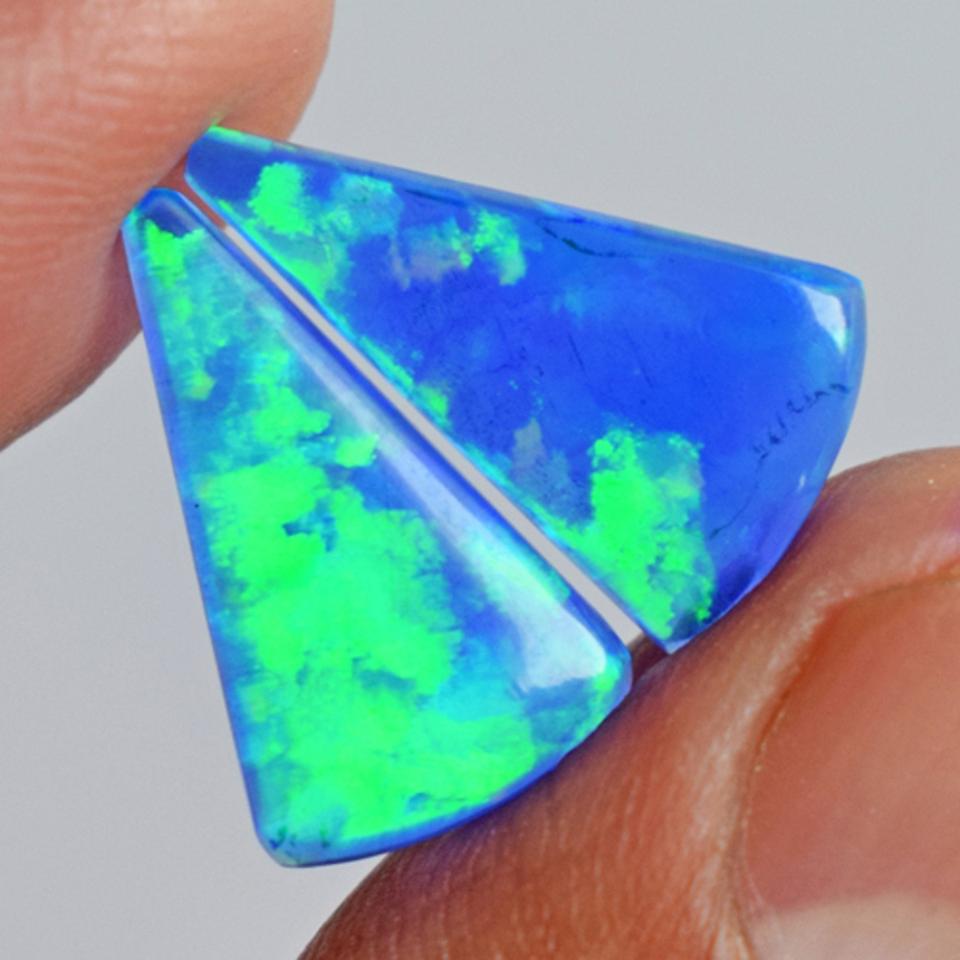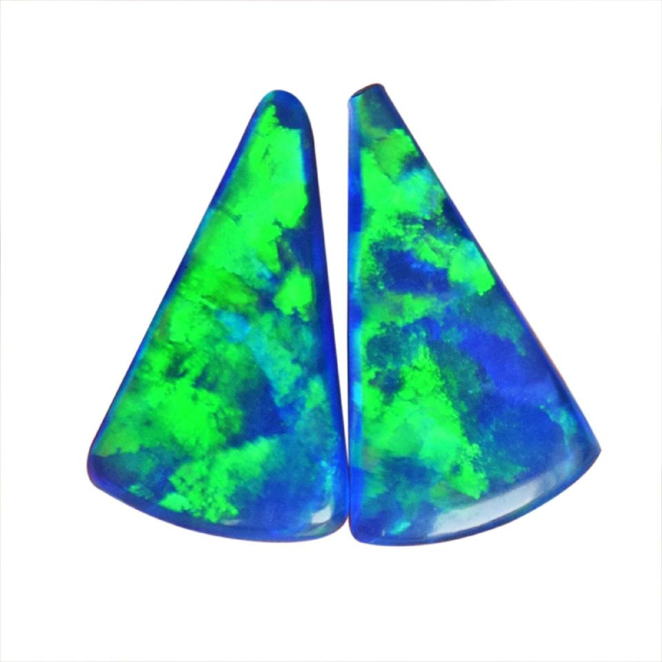 โอปอลไฟสีฟ้าเขียวธรรมชาติแท้ คู่ทรงทริลเลียนคัต คาโบชอง ขนาด 16x10x2 มม. พลอยหลวมสำหรับทำเครื่องประดับ