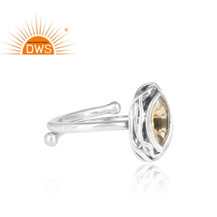 ทองธรรมชาติซิทรินพลอยรูปไข่รูปปรับแหวนเครื่องประดับเงิน925ออกซิไดซ์แหวนเครื่องประดับผู้ค้าส่ง