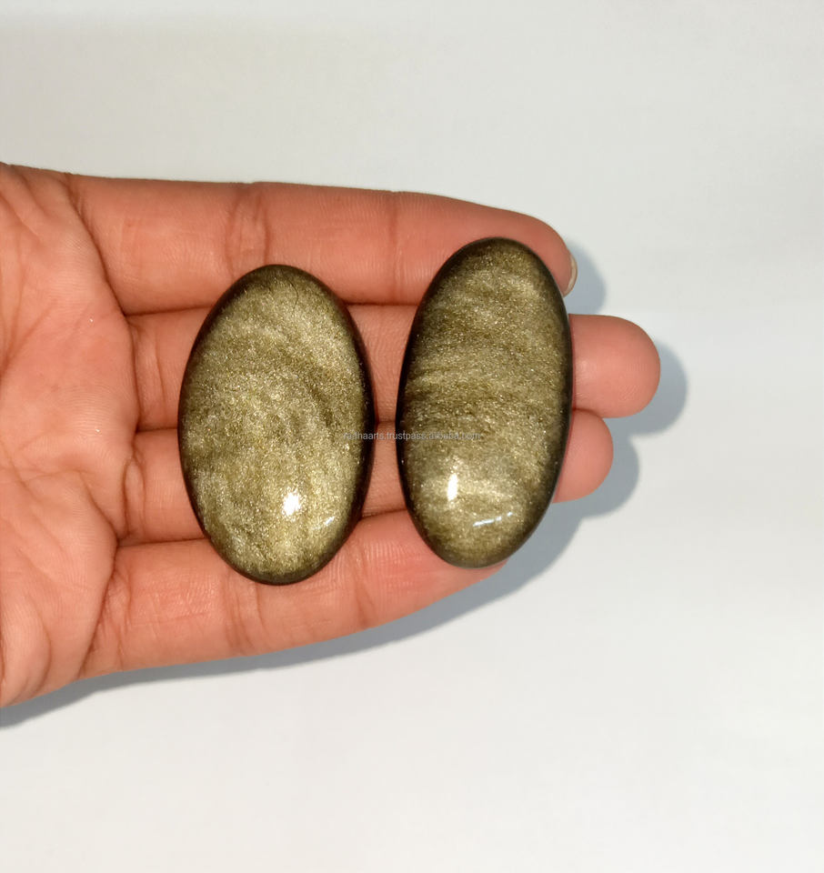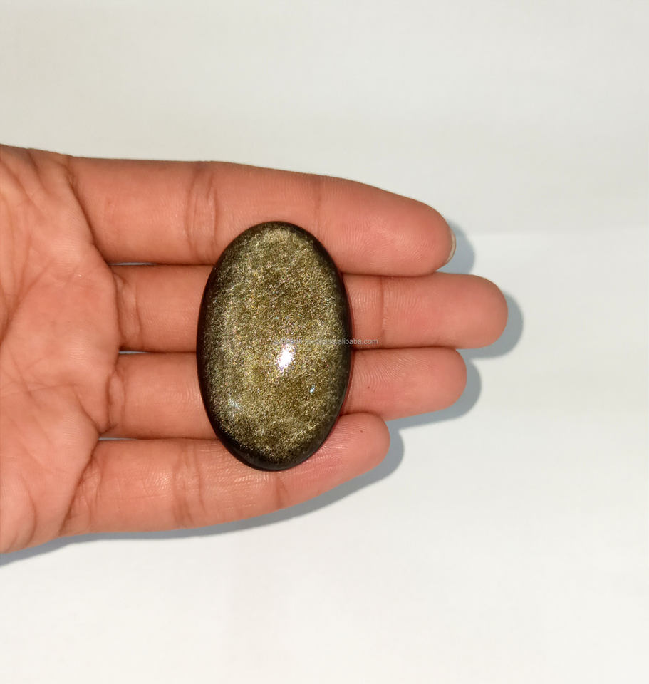 พลอยโอบซิเดียนสีทองธรรมชาติแบบคาโบชอง แบบขายส่ง แบบขัดเงา