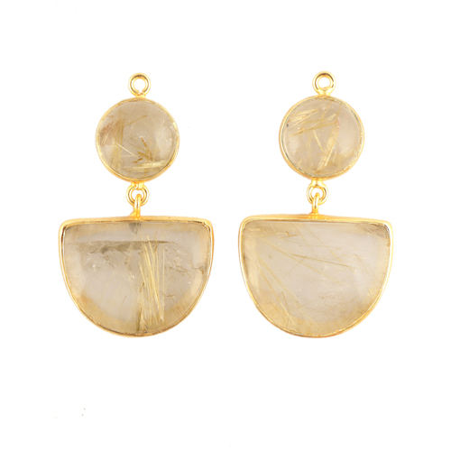 Rutile ทองธรรมชาติ DIY ต่างหูคู่เครื่องประดับทำครึ่งวงกลมที่มีรูปทรงกลม