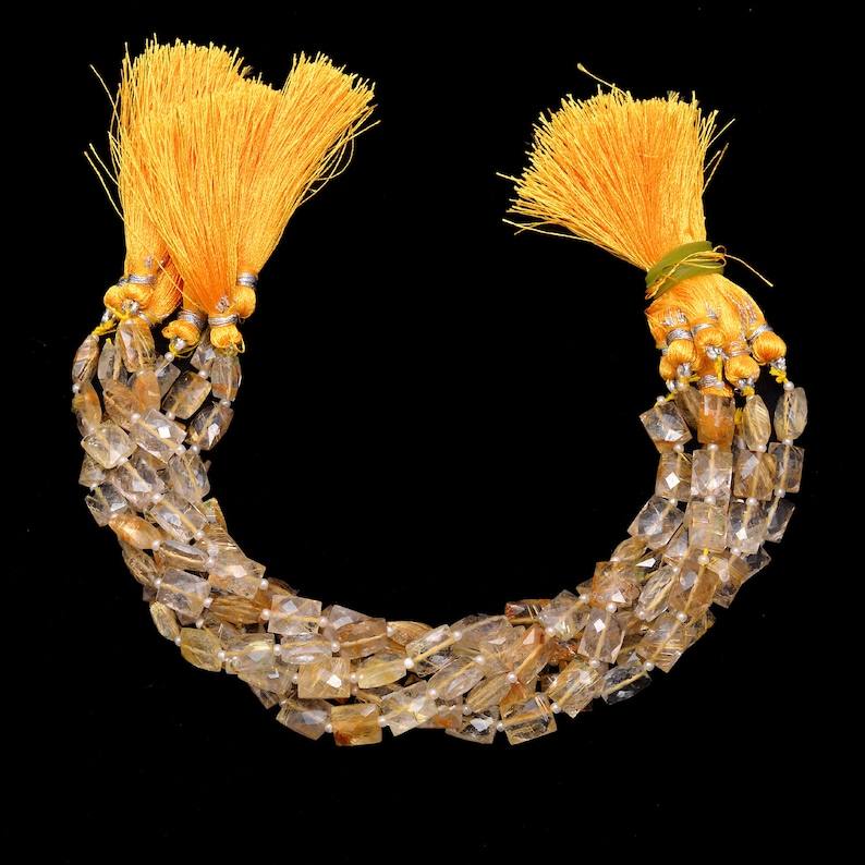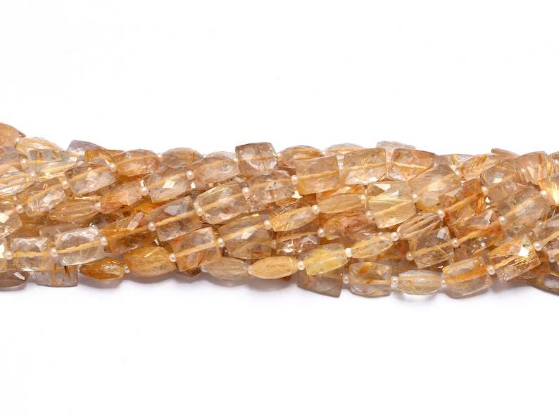 ลูกไก่สี่เหลี่ยมมุมฉากสีทองธรรมชาติลูกปัดอัญมณีหลวมขนาด5-9มม. ลูกปัดสีเหลืองทองสำหรับทำเครื่องประดับจำนวนมาก8"