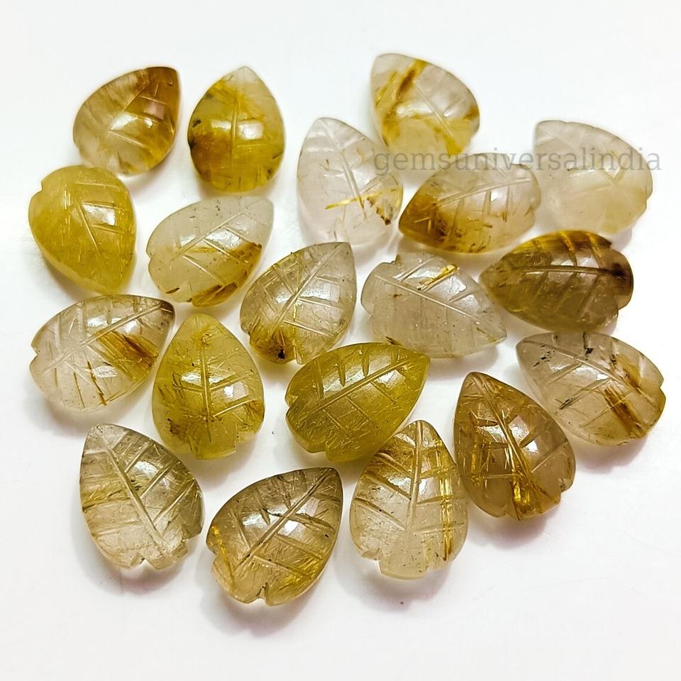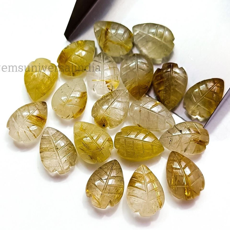 ทับทิมสีทองธรรมชาติแกะสลักด้วยมือลูกปัดใบไม้สำหรับทำเครื่องประดับอัญมณีสีทอง14x10มม. แกะสลักใบอัญมณีหลวม