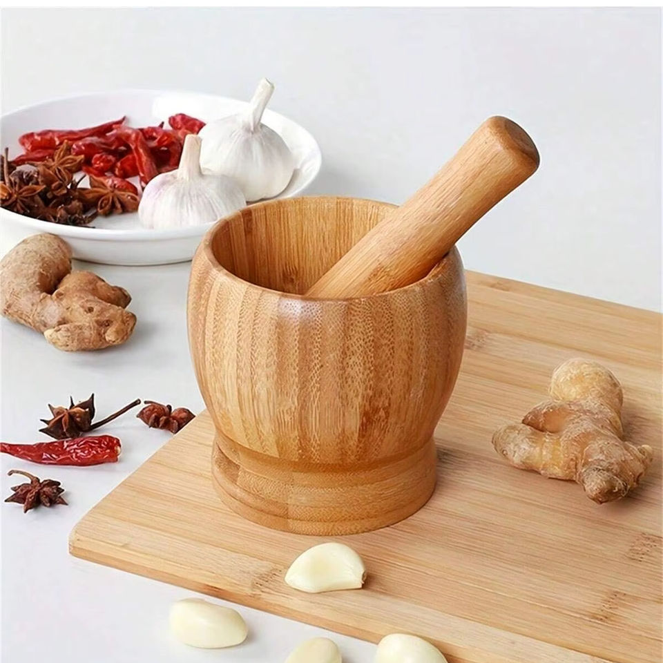 ปูนและสากทำจากไม้ลายธรรมชาติเหมาะสำหรับการตกแต่งห้องครัวแบบชนบทและข้อกำหนดการบดเครื่องเทศทุกวัน
