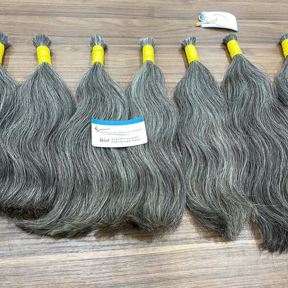 ผมต่อผมมนุษย์บริสุทธิ์จากเวียดนาม100% มีปลายหนาสองชั้นแบบตรงธรรมชาติสีเทา
