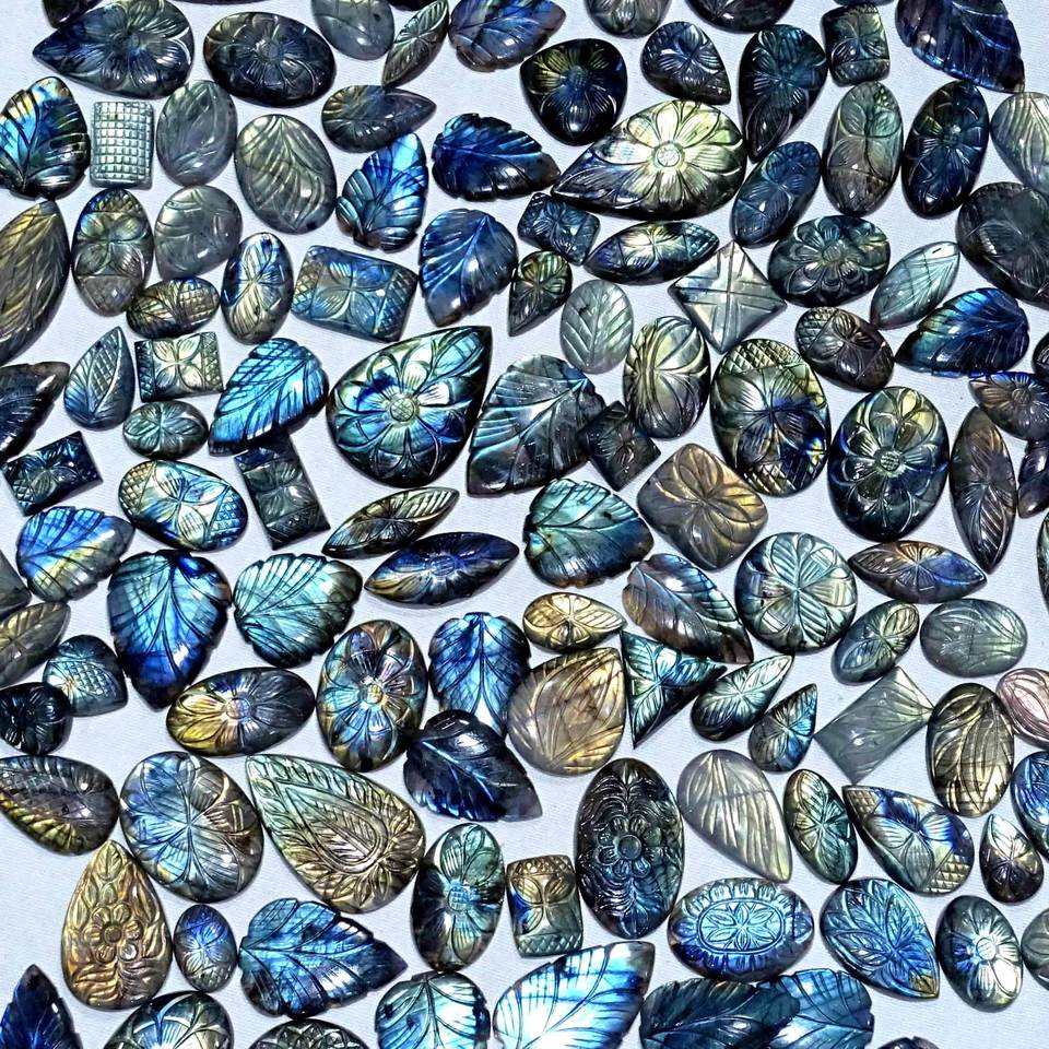 ดอกไม้ลาบราดอร์ไทต์สีเทาธรรมชาติแกะสลัก Cabochons หลวมอัญมณีกึ่งมีค่าผู้ผลิตขายส่งในราคาโรงงาน ซื้อตอนนี้