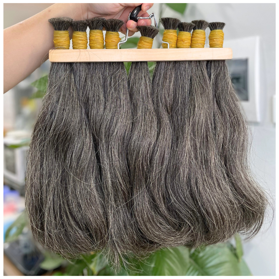 ผมต่อแบบไม่ผ่านกระบวนการผมตรงบริสุทธิ์สีเทาธรรมชาติจากโรงงาน michair